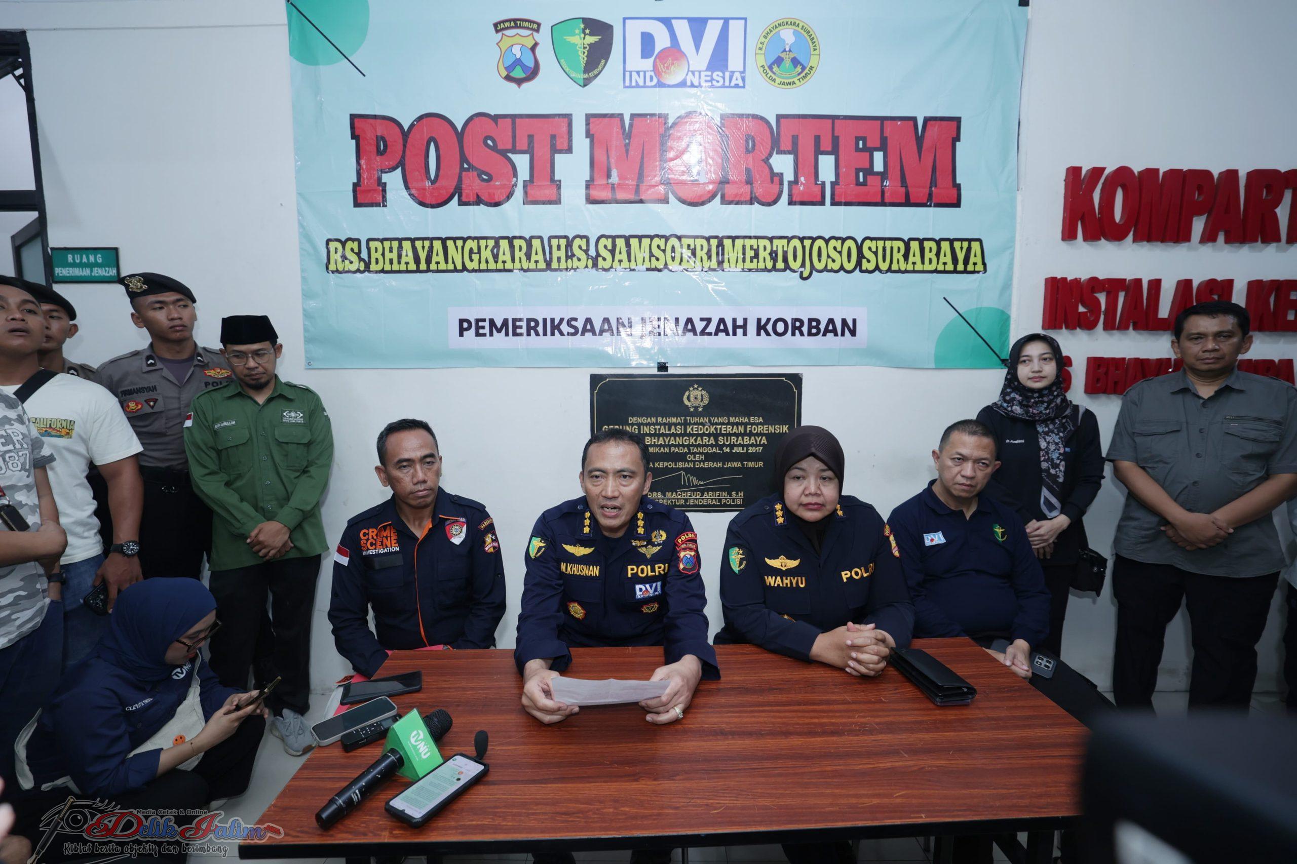 Hal itu disampaikan oleh Kabiddokkes Polda Jatim Kombes Pol. Dr. dr. Mohammad Khusnan Marzuki, dalam keterangan resminya di Posko Post Mortem, RS Bhayangkara Polda Jatim,Sabtu malam (4/10).