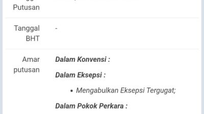 - Pemeriksaan pokok perkara tidak dapat dilakukan.Dengan demikian, gugatan dinyatakan NO (Niet Ontvankelijke Verklaard)—gugatan dianggap tidak sah sejak awal.