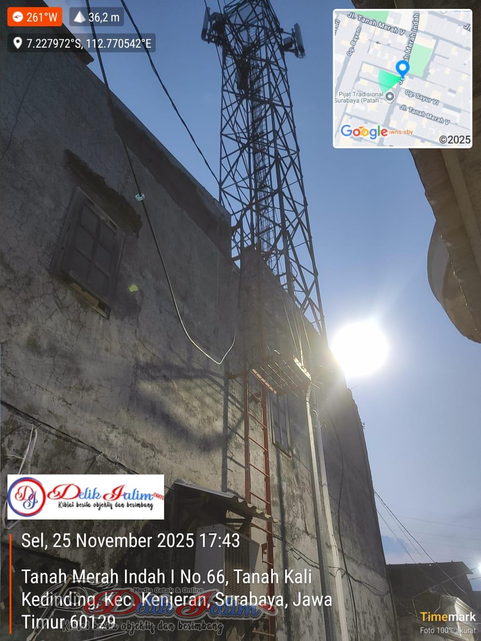 Surabaya, Delikjatim.com — Sejumlah warga di kawasan Tanah Merah, Surabaya, mendesak Satuan Polisi Pamong Praja (Satpol-PP) Kota Surabaya untuk segera menertibkan sebuah tower seluler milik PT Protelindo yang diduga beroperasi tanpa mengantongi izin resmi. Keberadaan tower tersebut menimbulkan keresahan di tengah masyarakat. Selasa 25-11-2025