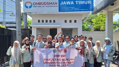 Fakultas Hukum Universitas Ma’arif Hasyim Latif (UMAHA) kembali menunjukkan komitmennya dalam meningkatkan kompetensi mahasiswanya melalui kegiatan study visit ke Kantor Ombudsman Republik Indonesia Perwakilan Jawa Timur, Jumat (5/12). Kegiatan ini diikuti puluhan mahasiswa Program Studi Hukum dan didampingi oleh dosen pembimbing, Ahmad Heru Romadhon, S.H., M.H.