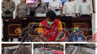 Kapolrestabes Surabaya, Kombes Pol Luthfie Sulistiawan, S.I.K., M.H., M.Si., didampingi Kasat Reskrim AKBP Edy Herwiyanto, S.H., M.H., M.Kn., serta Kasih Humas AKP Rina Shanty Dewi Nainggolan, S.H., menjelaskan kronologi penangkapan.