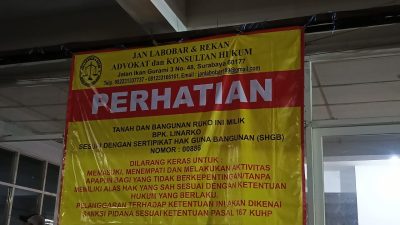Keluarga juga melaporkan adanya dugaan gangguan fasilitas air bersih yang semakin memperburuk kondisi. Di bagian depan bangunan, terpasang spanduk klaim kepemilikan oleh pihak tertentu, meskipun belum ada keputusan pengadilan yang berkekuatan hukum tetap terkait status bangunan tersebut.
