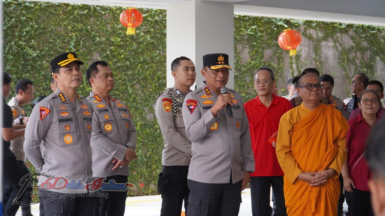 Surabaya, Delikjatim.com – Perayaan Tahun Baru Imlek di Kota Pahlawan berlangsung dengan suasana penuh ketenangan dan kekhidmatan. Kapolrestabes Surabaya Kombes Pol Luthfi Sulistiawan turut mendampingi Kapolda Jawa Timur Irjen Pol Drs. Nanang Avianto, M.Si dalam melakukan peninjauan langsung ke sejumlah vihara guna memastikan rangkaian ibadah berjalan aman, tertib, dan memberikan rasa nyaman bagi umat yang merayakan.