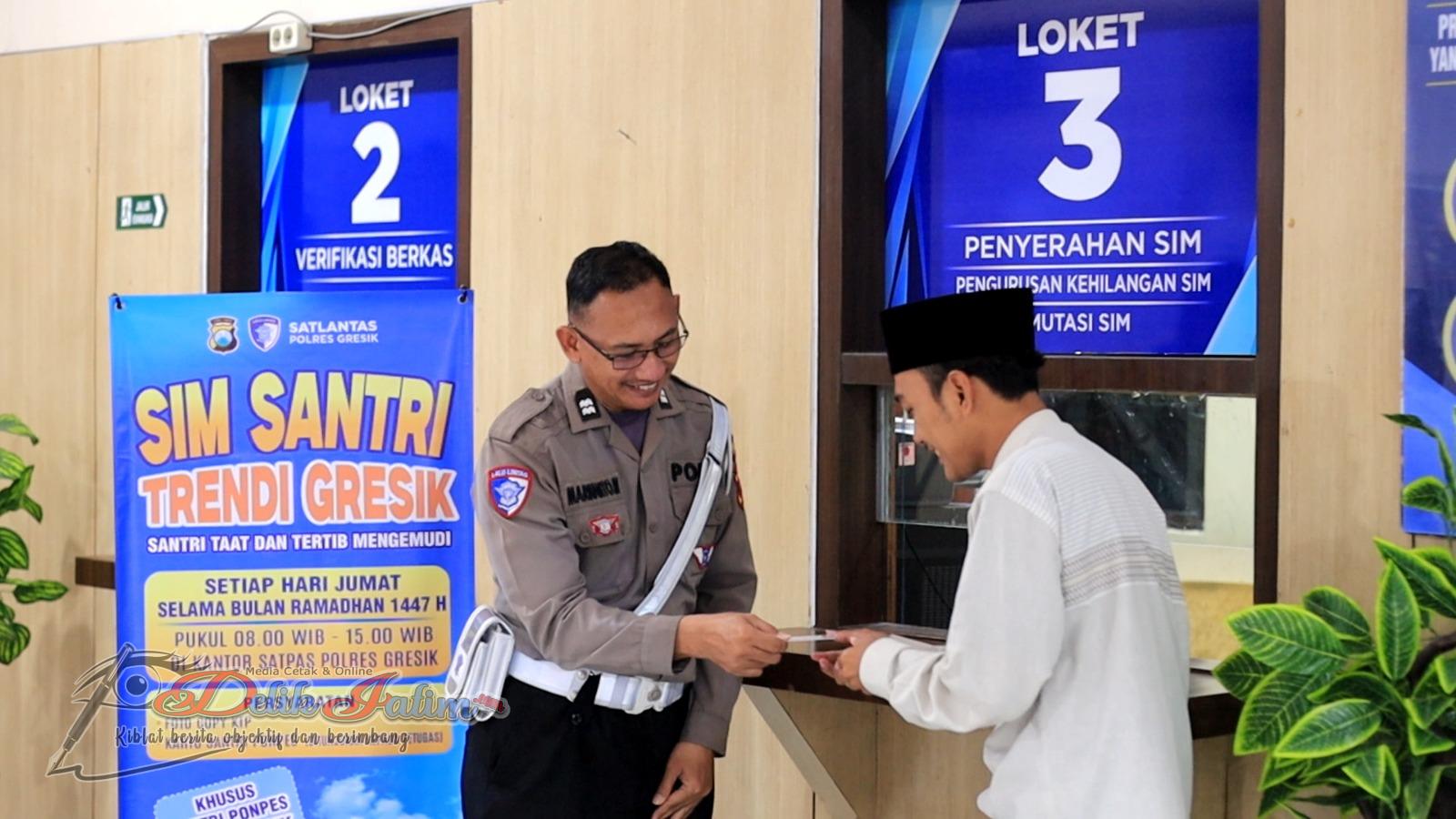 GRESIK, Delikjatim.com – Polres Gresik melalui Satuan Lalu Lintas menghadirkan terobosan pelayanan publik bertajuk SIM Santri Trendi (Taat dan Tertib dalam Mengemudi) selama Ramadan 1447 H. Program ini menjadi solusi bagi para santri yang ingin mengurus Surat Izin Mengemudi (SIM) tanpa mengganggu aktivitas ibadah dan pendidikan di pesantren.