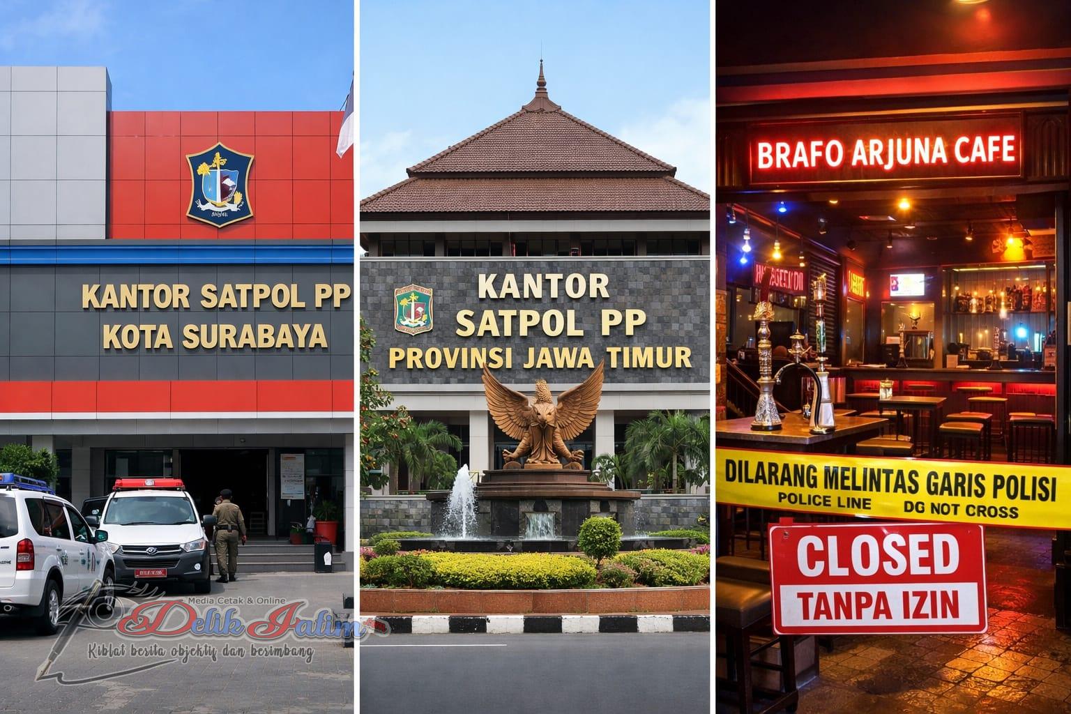 Surabaya, Delikjatim.com – Penertiban yang dilakukan Satpol PP Kota Surabaya terhadap Kafe Brafo Arjuna di Jalan Kenjeran 169 menimbulkan polemik baru. Meski pelanggaran telah ditemukan dan diproses hukum, kejelasan terkait sanksi penutupan tempat usaha tersebut hingga kini belum menemui titik terang.